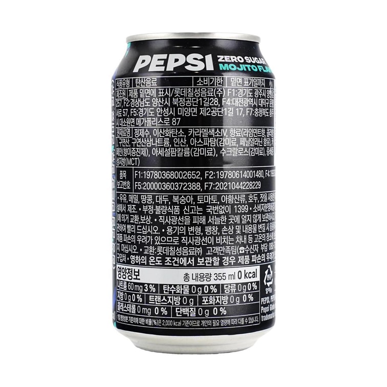 韓國版百事可樂 無糖可樂 莫吉托口味 355ml
