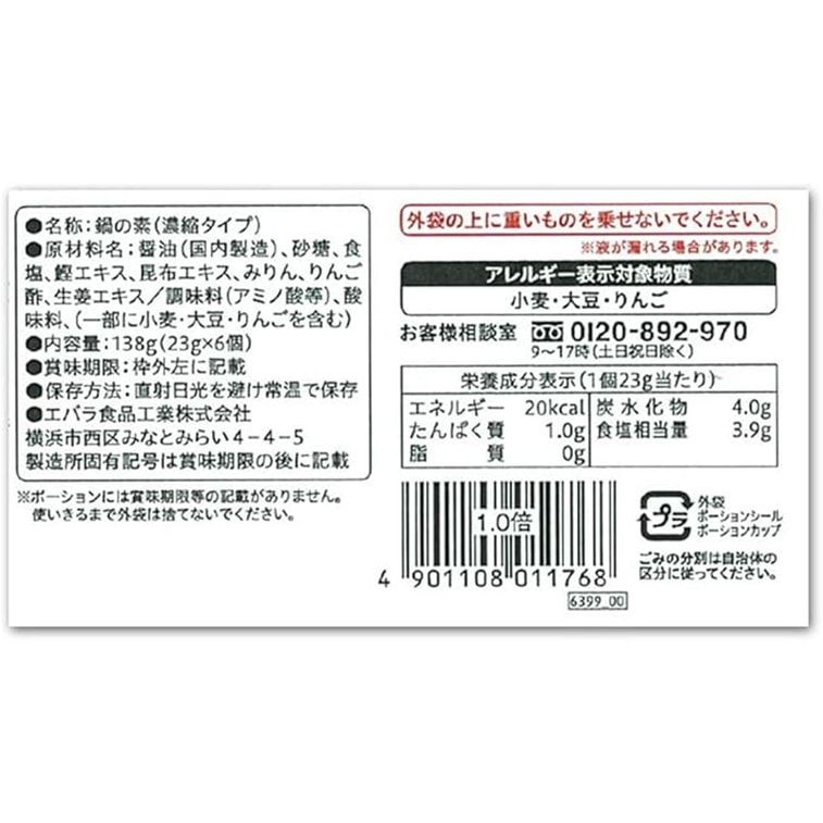 【日本直郵】 日本 EBARA FOODS Ebara 荏原 濃縮烏冬火鍋 鰹魚昆布海鮮鍋 6個入