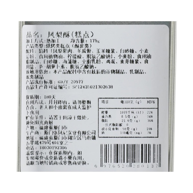 張鳳記 鳳梨酥禮盒 傳統中式糕點 175g 【 懷舊鐵盒鳳梨酥】【台灣老師傅配方】【廈門特產伴手禮】