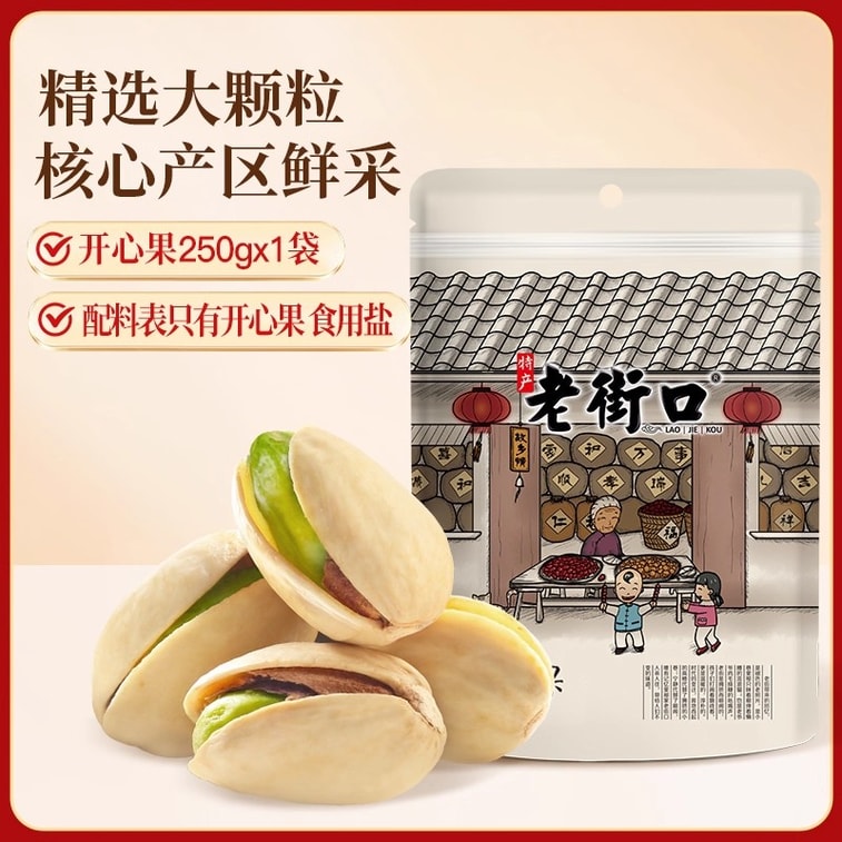 【中國直郵】 老街口 開心果 堅果炒貨原味乾果健康孕婦休閒量販零食新貨250g/袋 | 亞米