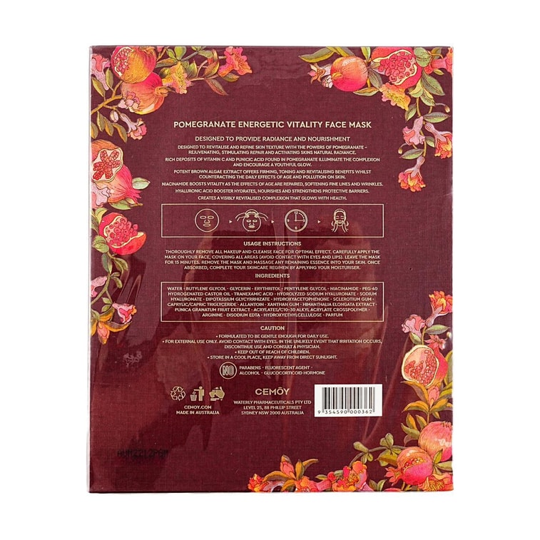 澳洲CEMOY澳詩茉莉 澳秘膜力系列 石榴活力煥彩面膜 5片入 提亮氣色 抗氧保濕 修護再生 平滑肌理