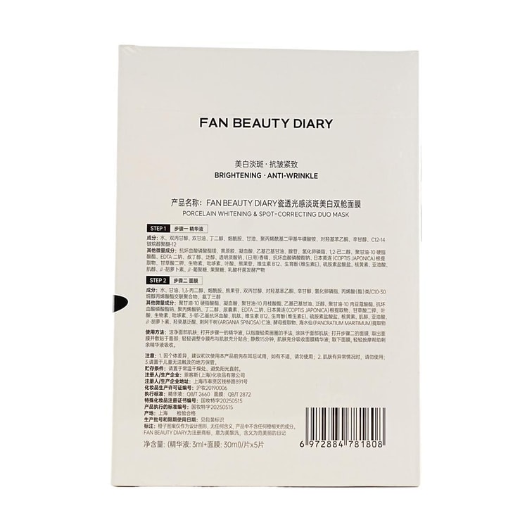 FAN BEAUTY VC大桔面膜 瓷透光感淡斑美白雙艙面膜 1塗2敷 5片/盒*2 抗皺緊緻煥發 速改暗黃【超值裝】