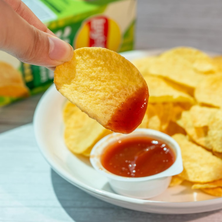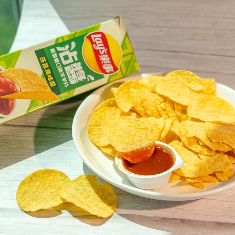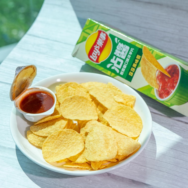 台灣版LAY'S樂事 沾醬洋芋片 輕雪鹽洋芋片+莎莎風味醬 85g【內含一整盒墨西哥風味莎莎醬】