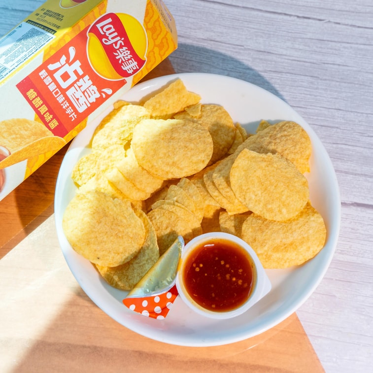 台灣版LAY'S樂事 沾醬洋芋片 輕雪鹽洋芋片+糖醋風味醬 85g【內含一整盒糖醋醬】