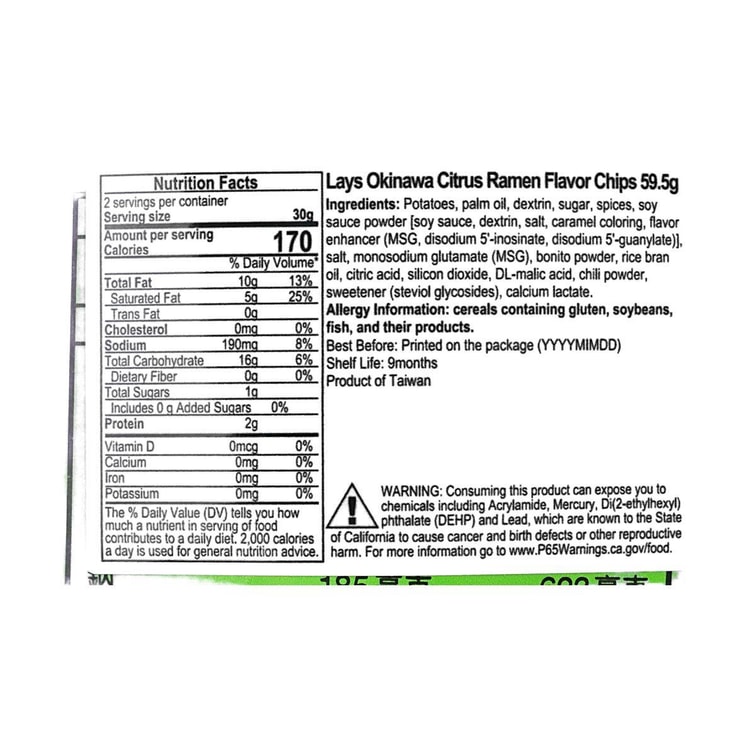 台灣LAY'S樂事 洋芋片 沖繩柑橘拉麵味 59.5g