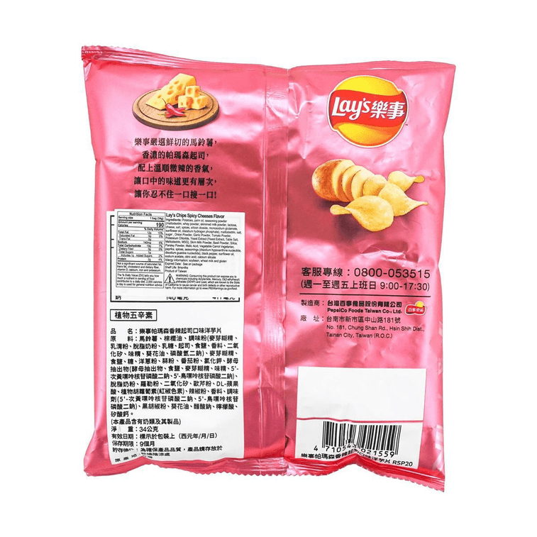 台灣版LAY'S樂事 帕瑪森香辣起司口味洋芋片 34g