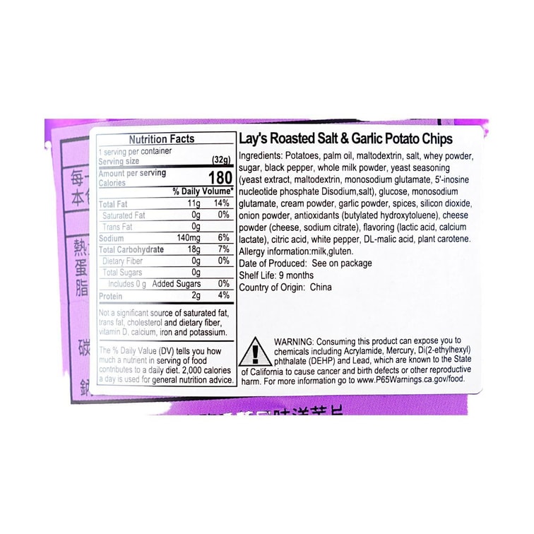台灣版LAY'S樂事 洋芋片 炙烤香蒜口味 32g