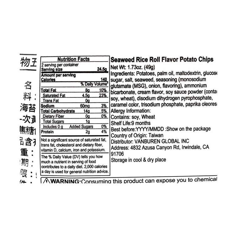 | 口味 | 海藻飯卷味 |