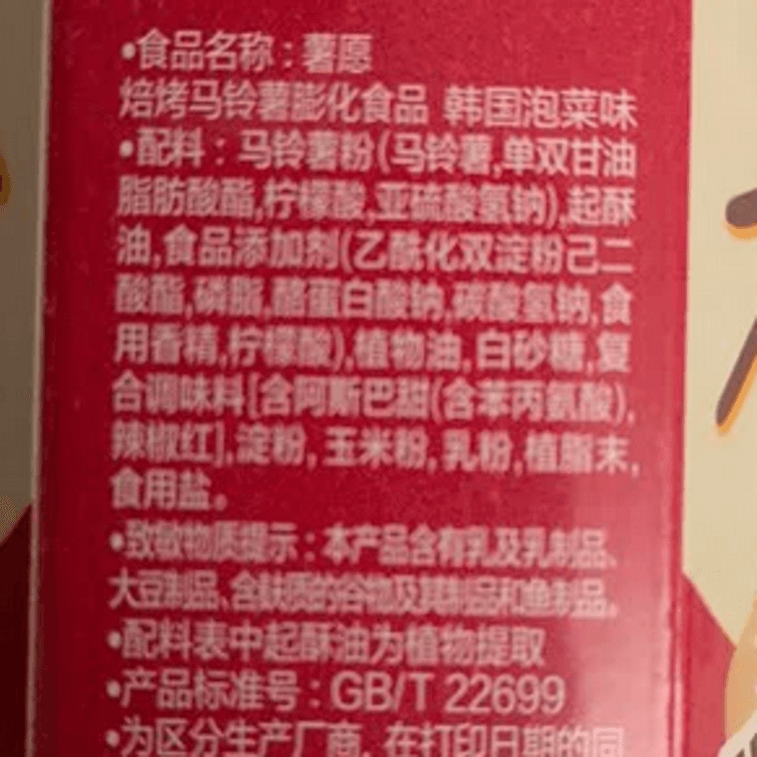【中國直郵】 好麗友中國 薯願洋芋片泡菜口味 97克