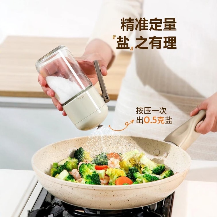 企鵝團團 精密鹽分配器 分鹽容器 定量鹽罐 帶防潮玻璃 調味罐 適合鹽 香料 胡椒 暖灰色 220ML