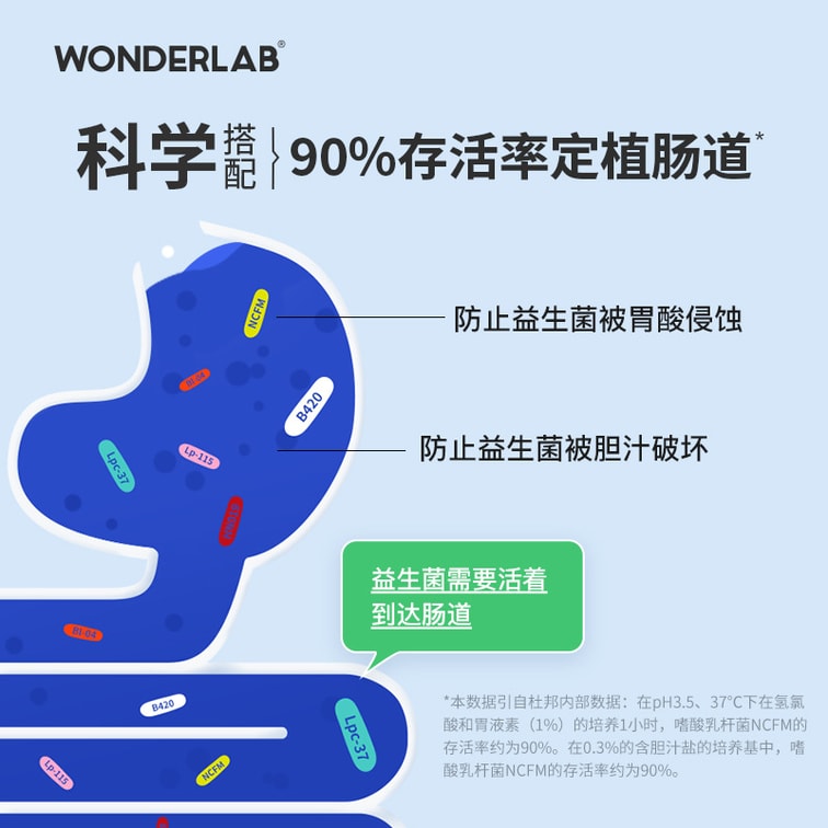 【中國直郵】萬益藍WonderLab 複合益生菌3瓶裝400億腸胃便秘益生元凍乾粉 3瓶裝