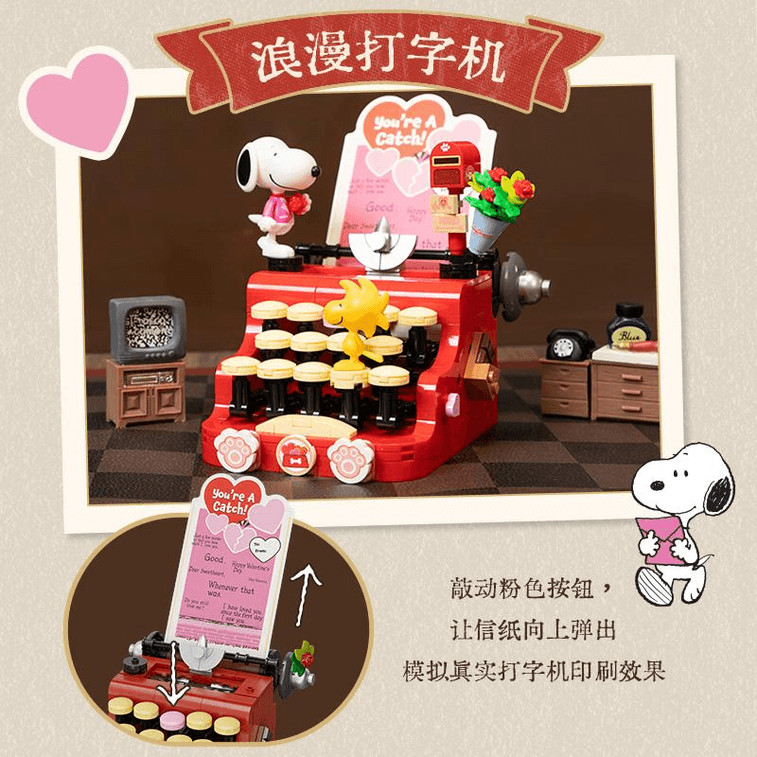 【中國直郵】 拼奇積木 史努比浪漫打字機 18*16*15.4cm*1個