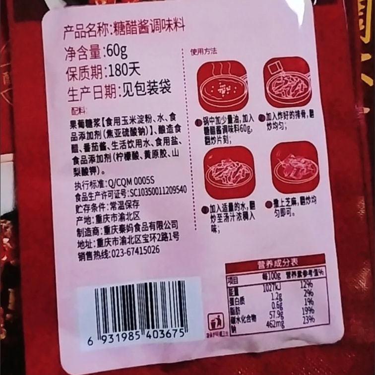 【中國直郵】 秦媽 糖醋汁糖醋魚調味 1袋60g 糖醋排骨 糖醋裡肌 調味料 醬汁 家用小包裝