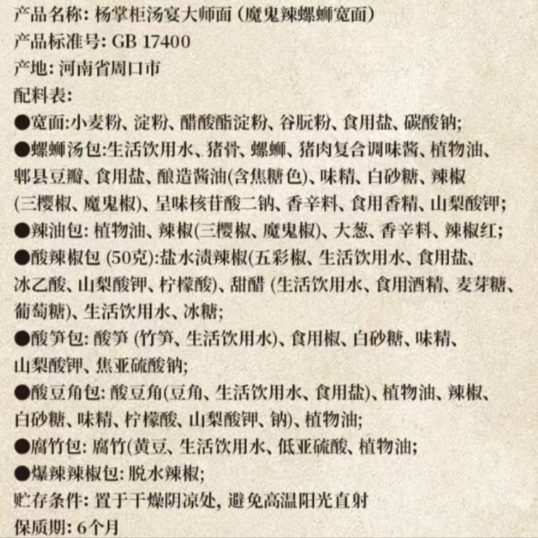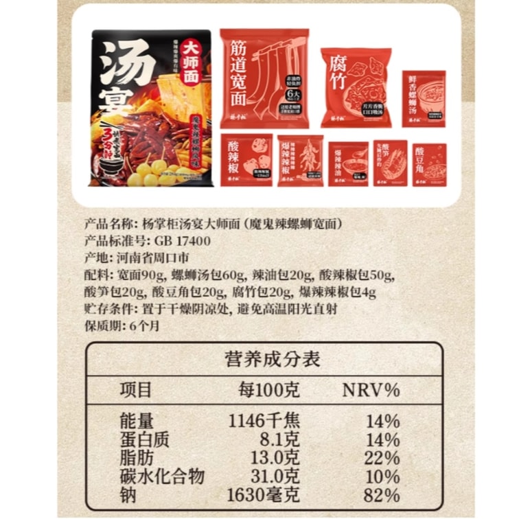 【中國直郵】 楊掌櫃 湯宴大師麵 魔鬼辣螺螄風味 方便速食 284g