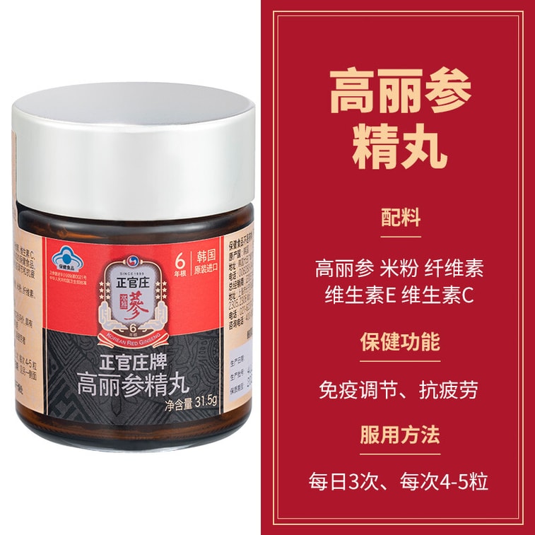 【中國直郵】 韓國 正官莊 高麗參精丸 31.5g 提高免疫力 抗疲勞 原廠進口人參精丸