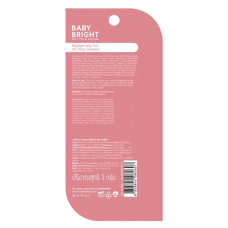 泰國 BabyBright 鏡面果凍唇釉 嘭彈潤嘟嘟唇 抗老強韌唇肌豐唇 水潤滋養不黏膩 3g #01 Rosy Cheeked【小水同款】原版