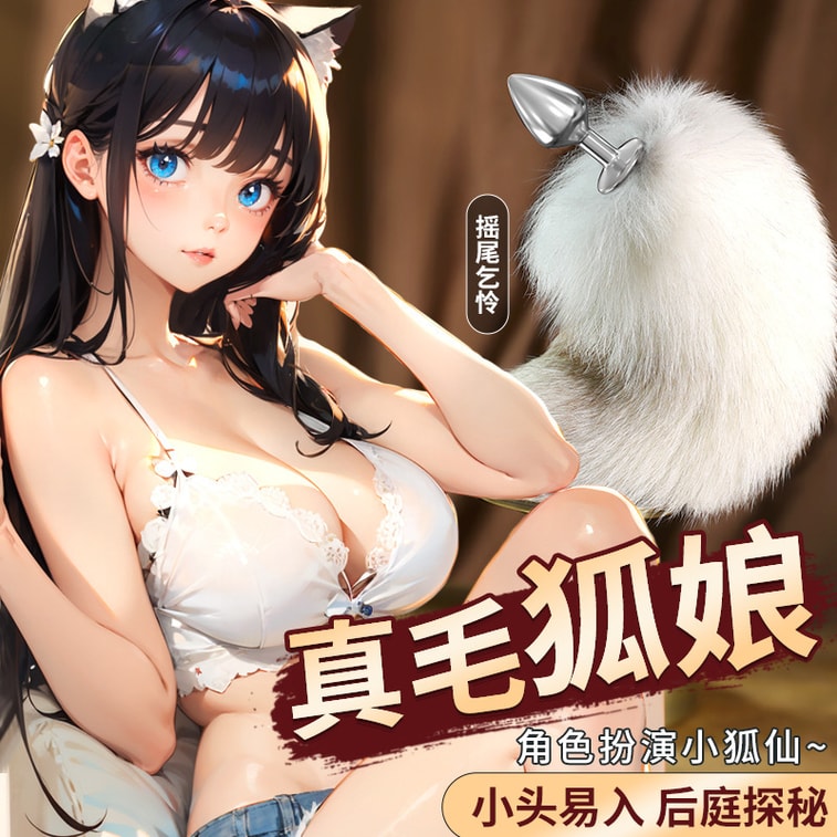 【中國直郵】 謎姬 可拆式狐仙真毛狐尾白灰肛塞女用器皿後庭用品COS角色扮演調情
