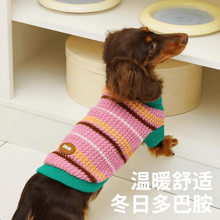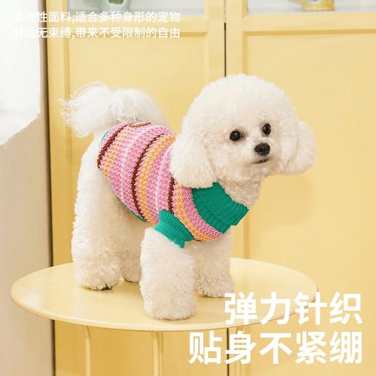 【中國直郵】 ZEZE 復古條紋寵物針織衫(粉)(適用於6.5-9磅)S碼*1件