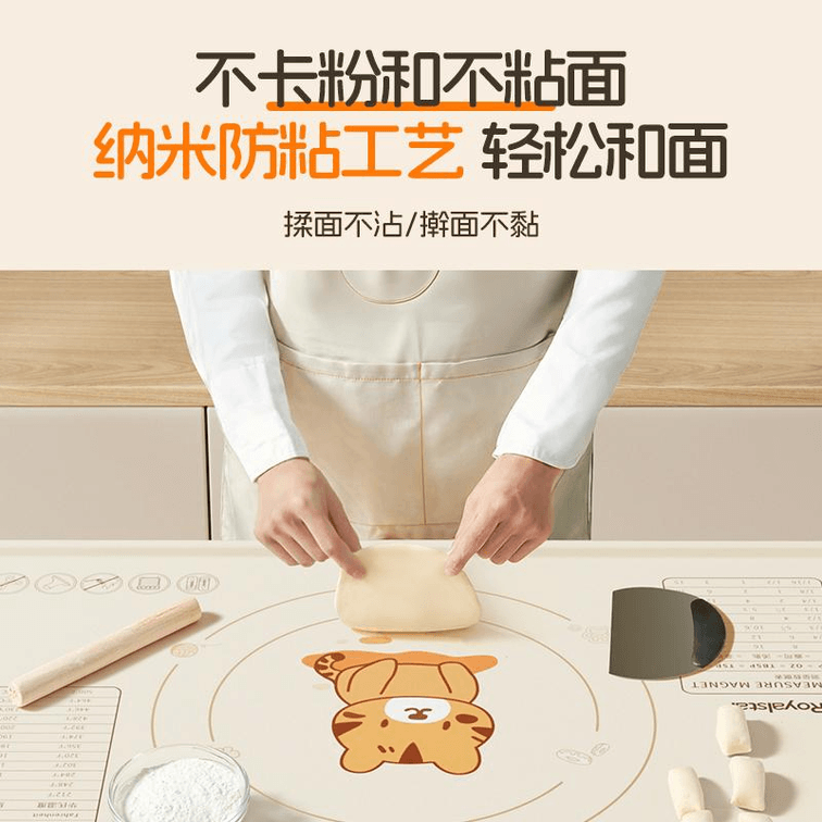 【中國直郵】榮事達矽膠揉麵墊子 加厚食品級及麵墊家用擀麵墊案板 烘焙工具小萌虎65*45[特厚6MM]*1件