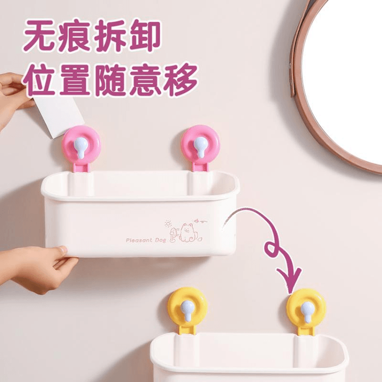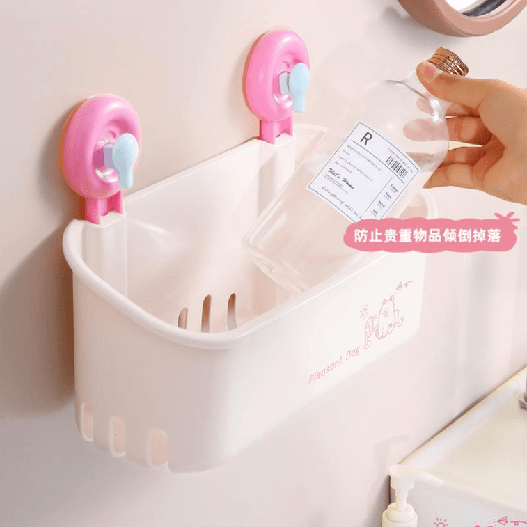 【中國直郵】 簡誠 薔薇粉多巴胺吸盤置物架免打孔壁掛式衛生間浴室廁所牆承重瀝水收納架子 30*20*12cm *1件