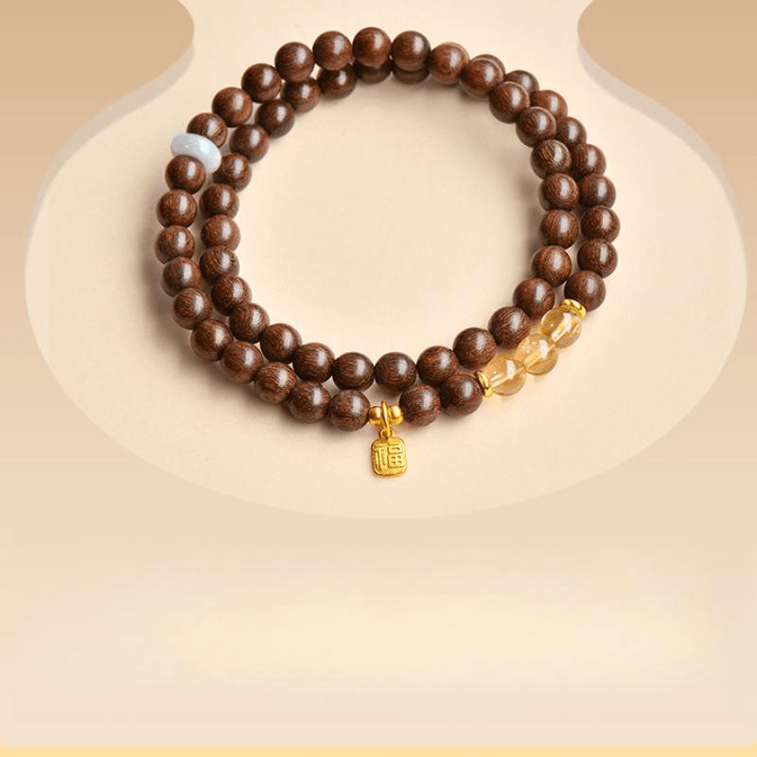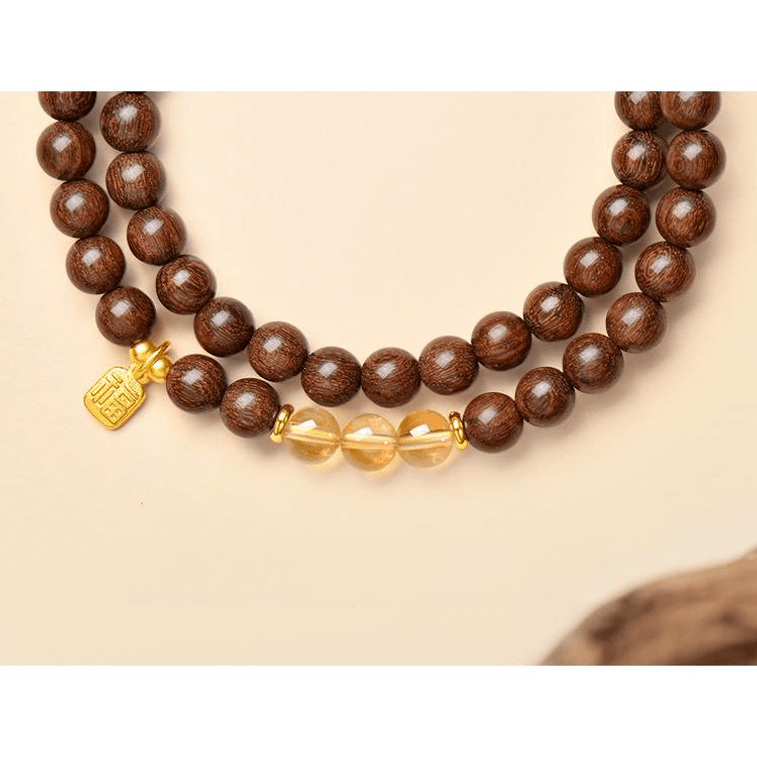 【中國直郵】 儒邑文創 金絲檀木手串木質佛珠黃塔晶*1件