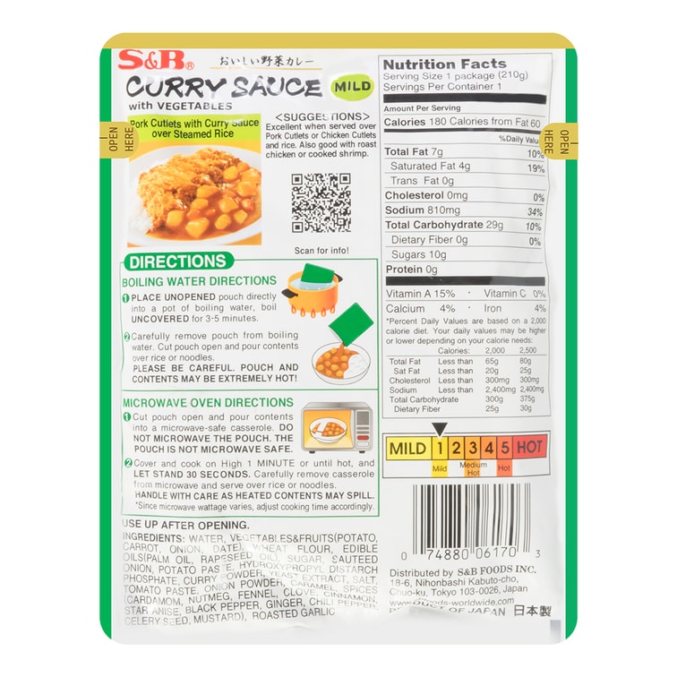日本S&B 可微波含蔬菜日式咖哩醬 微辣 210g