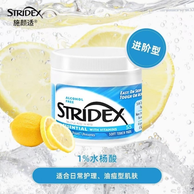 【中國直郵】 Stridex 水楊酸棉片 刷去閉口 祛痘 祛痘印 粉刺黑頭 清潔毛孔 1%水楊酸 藍罐 進階型 適合油痘性肌膚 55片/瓶【程十安同款推薦】