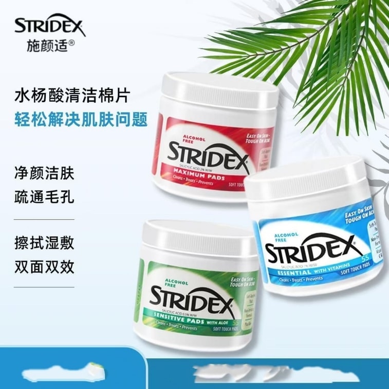 【中國直郵】 Stridex 水楊酸棉片 刷去閉口 祛痘 祛痘印 粉刺黑頭 清潔毛孔 2%水楊酸 紅罐 加強型 適合中重度油性肌及耐受肌 55片/瓶【程十安同款推薦】