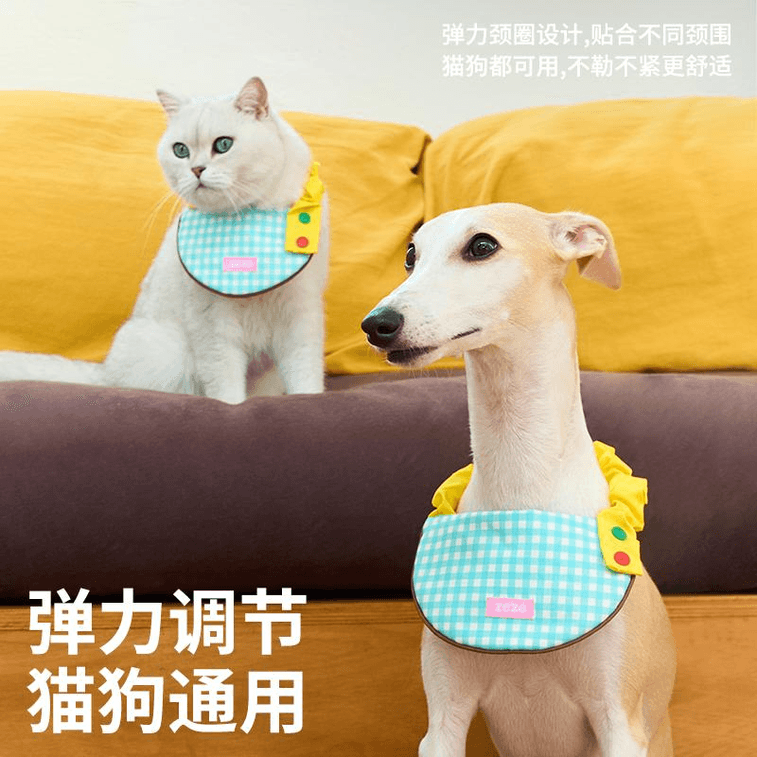 【中國直郵】 ZEZE 口水巾項圈寵物小貓藍格紋圍脖 中號*1件
