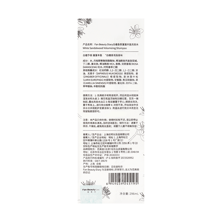 FAN BEAUTY 白檀香氛蓬蓬豐盈洗髮精 氨基酸洗髮精 控油防脫生髮 豐盈蓬鬆高顱頂 296ml 【范冰冰同款】