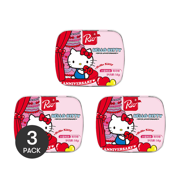 RIO RIO瑞歐 三麗鷗聯名 Hello Kitty 水蜜桃味薄荷糖 無糖薄荷糖 14g *3【3份超值裝】【清新口氣】 | 亞米