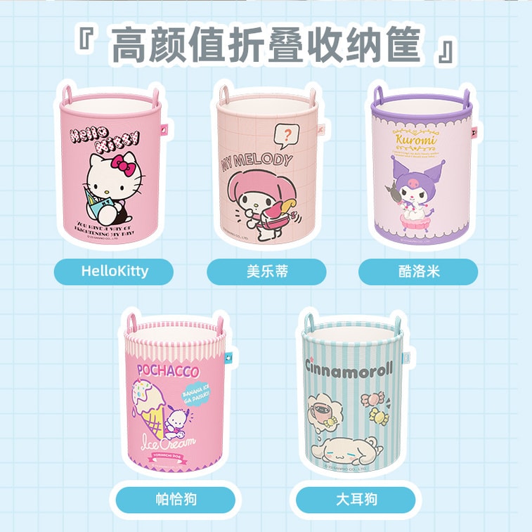 【中國直郵】SANRIO 三麗鷗 可折疊圓筒儲物籃 浴室 衛浴家用 大容量 衣服筐收納桶-帕恰狗藍色款 1個*|預計到達時間3-4週