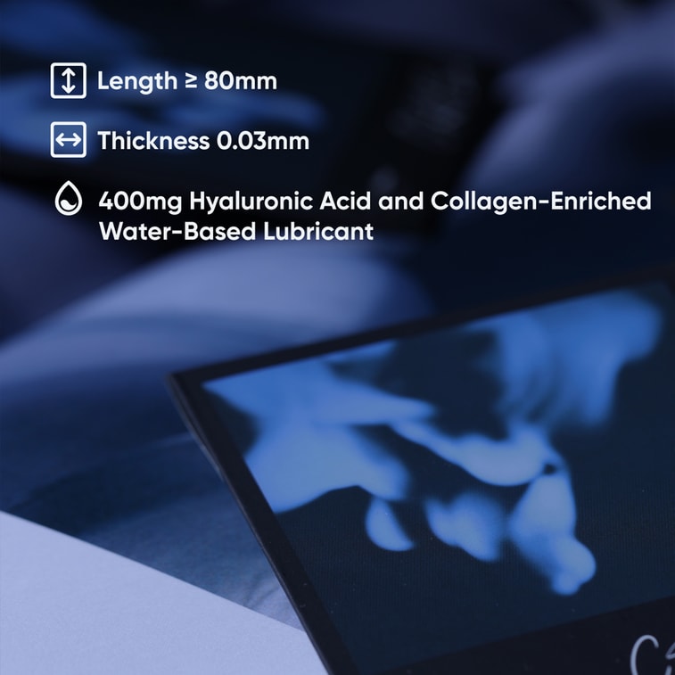 0.03mm超薄柔韌,400mg潤滑液,添加高含量透明酸