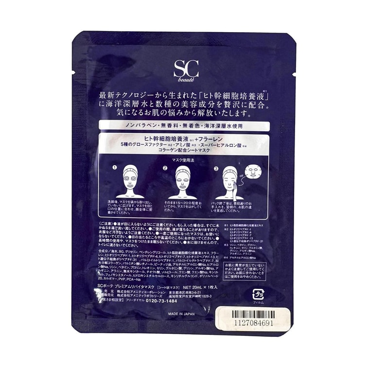 日本院線SC beaut'e SC 液態水光微針精華面膜 乾性原液再生面膜 緊緻抗皺 提拉撫紋 1片入【護膚沙龍專屬】