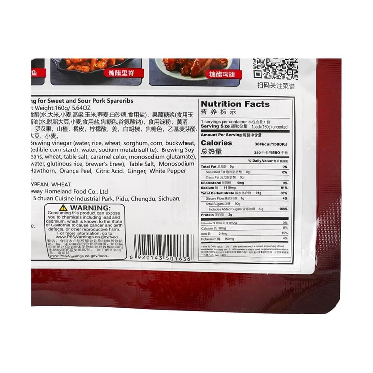 | 口味 | 糖醋排骨 |