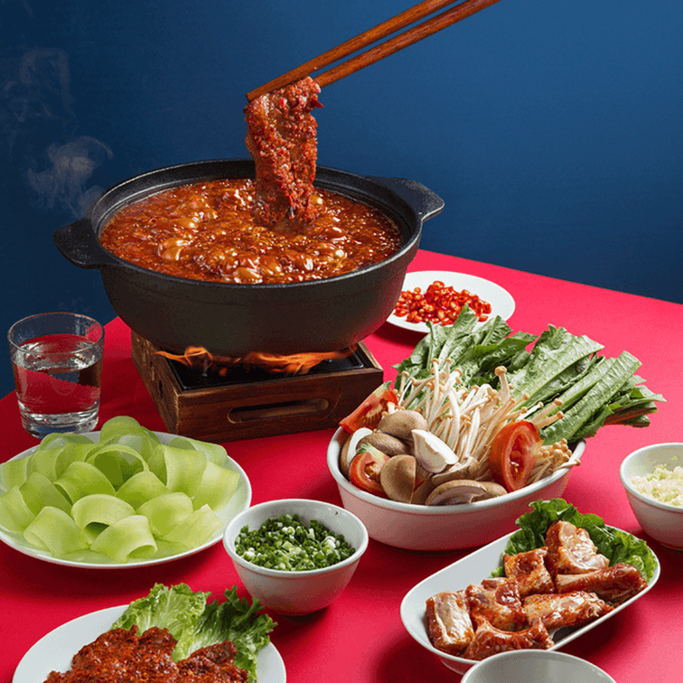 Add 1L of water or chicken broth in the pot. Add the individual packs in the pot (excluding the sesame oil). Wait until it to boil. Lower the heat level and let it cook for 20 more minutes. Use the sesame oil to make authentic Szechuan dipping sauce by adding green onions, garlics, and parsley.