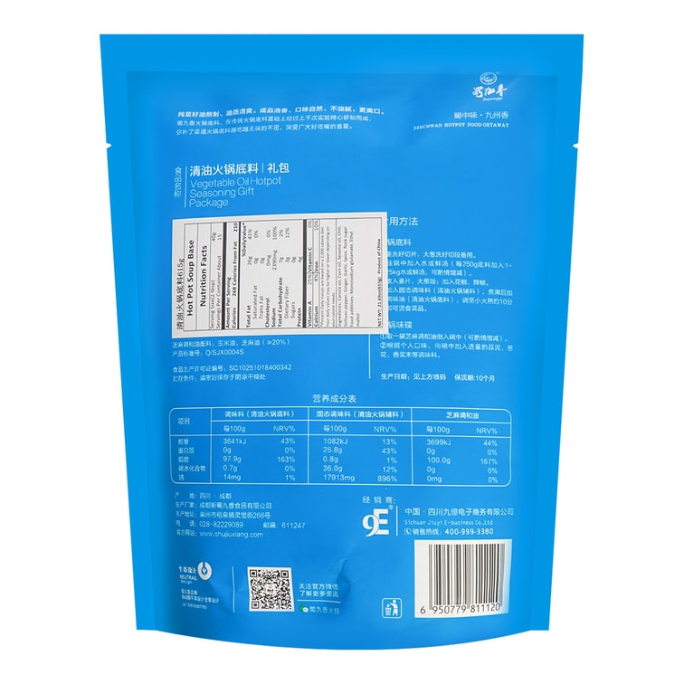 SHUJIUXIANG Hot Pot Soup Base with Beef Oil lets you have authentic Szechuan hot pot anytime you like at home! Using pure cow oil with no preservative, it brings the quality that you can taste! All sauces come in individually packs, allowing you to adjust the spiciness accordingly!