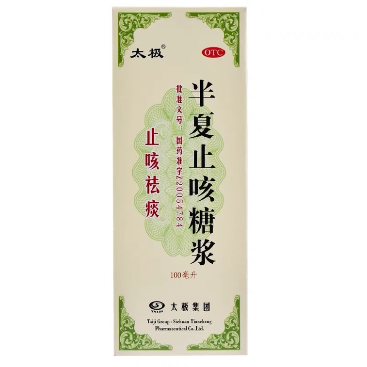 【中國直郵】太極 半夏止咳糖漿風寒咳嗽痰多風寒感冒止咳祛痰慢性支氣管炎咳嗽 100mL/盒