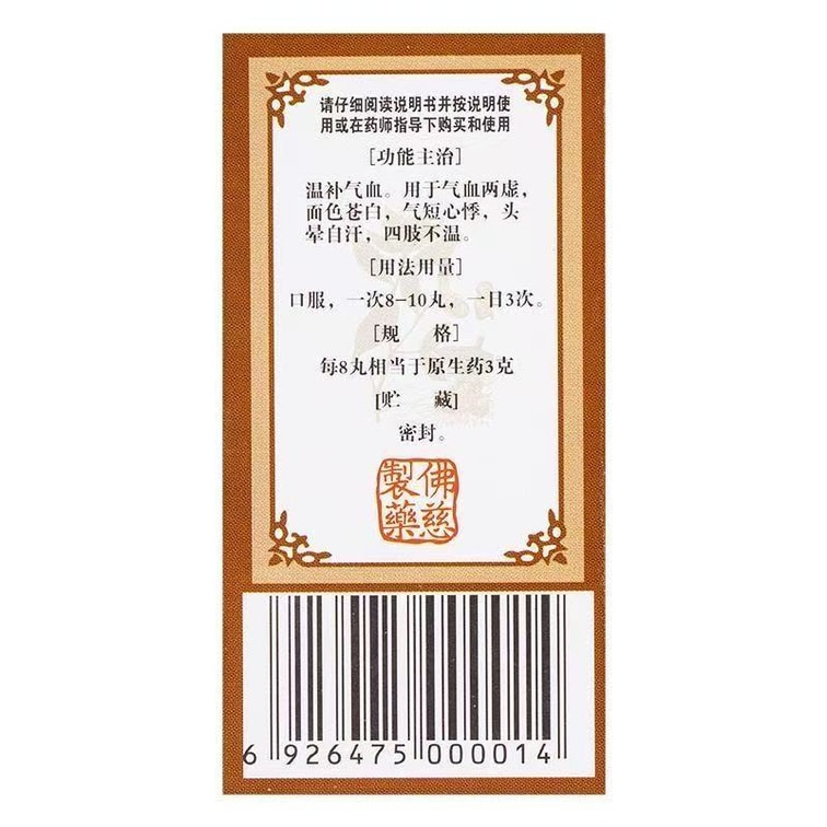 | 規格 | 十全大補丸 200丸 x 1盒 |