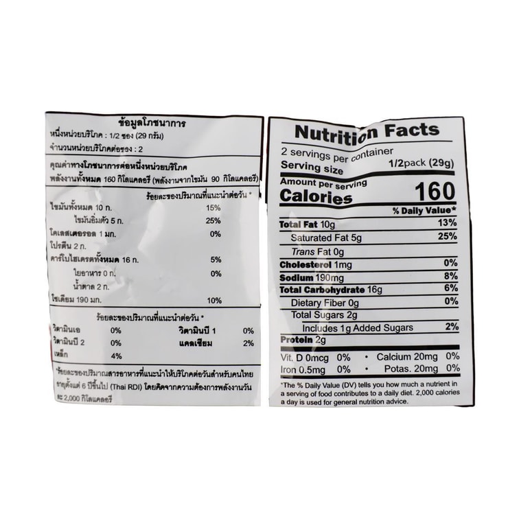 *免責聲明:本頁面所展示的營養成分資訊來自商品包裝,僅供參考。由於包裝版本、語言或拍攝方式的差異,內容可能存在偏差或顯示不完整,請以實際收到的商品包裝為準。若對成分、過敏原或適用族群有疑問,建議於使用前仔細閱讀包裝說明,或聯繫客服取得協助。