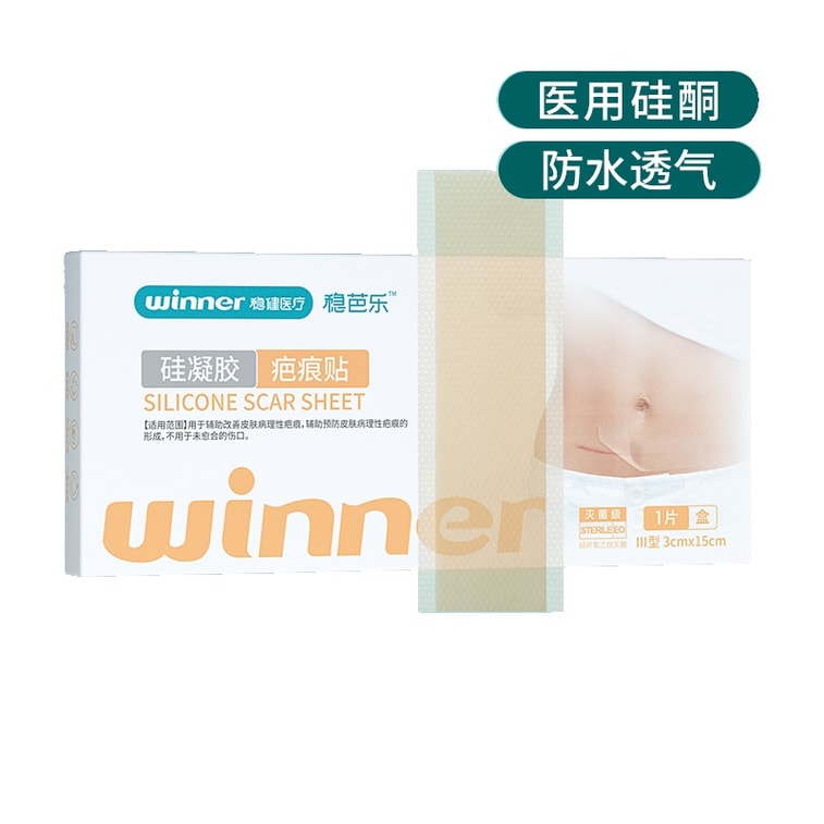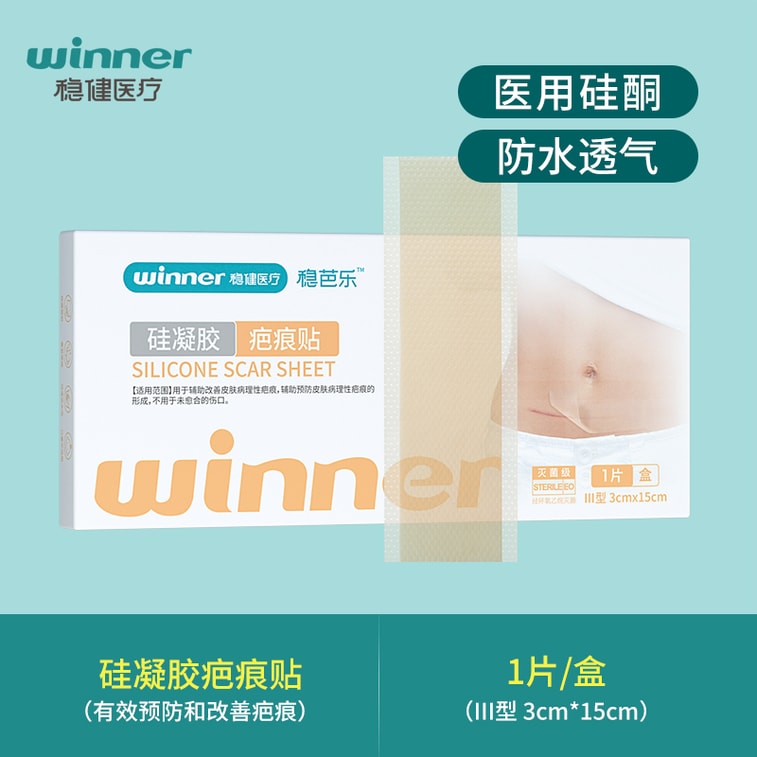 【中國直郵】Winners穩健醫療 矽凝膠醫用疤痕貼 剖腹產創傷燒燙傷手術傷口疤痕修復改善貼 防水 3*15cm/片/盒 2盒裝