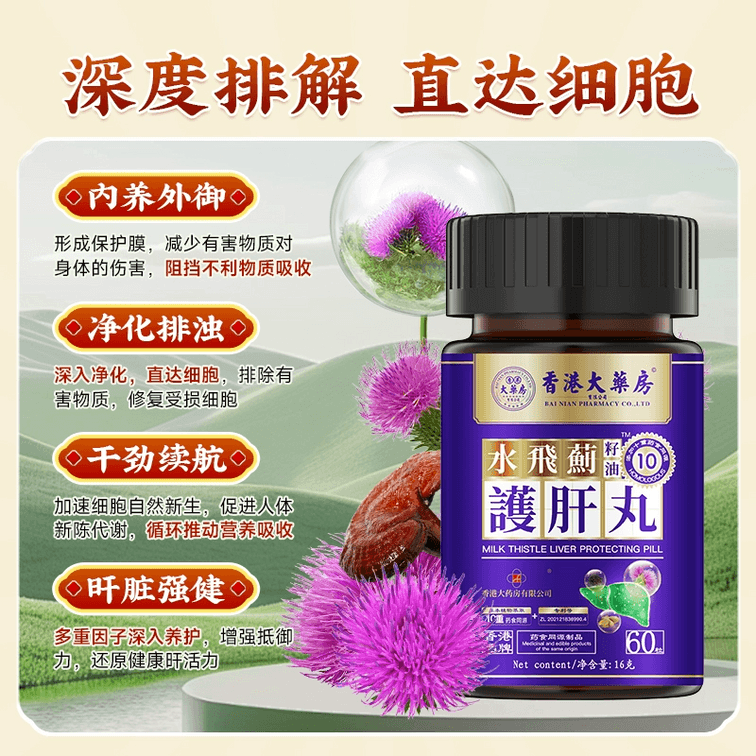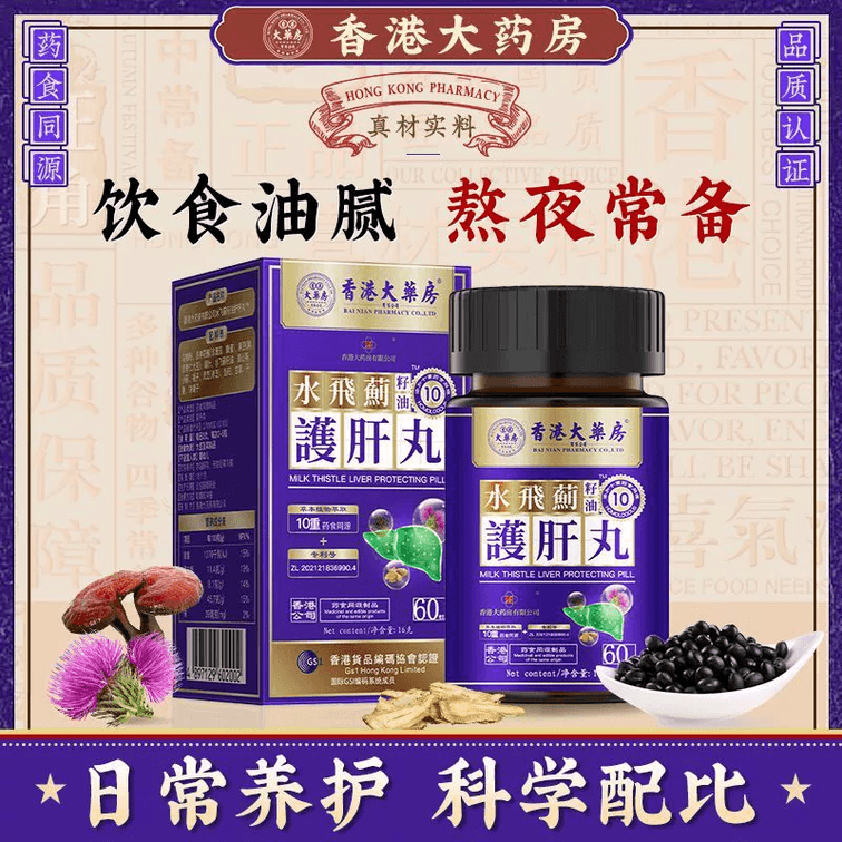 【中國直郵】 香港大藥房 水飛薊籽油護肝丸 草本萃取 1瓶60粒