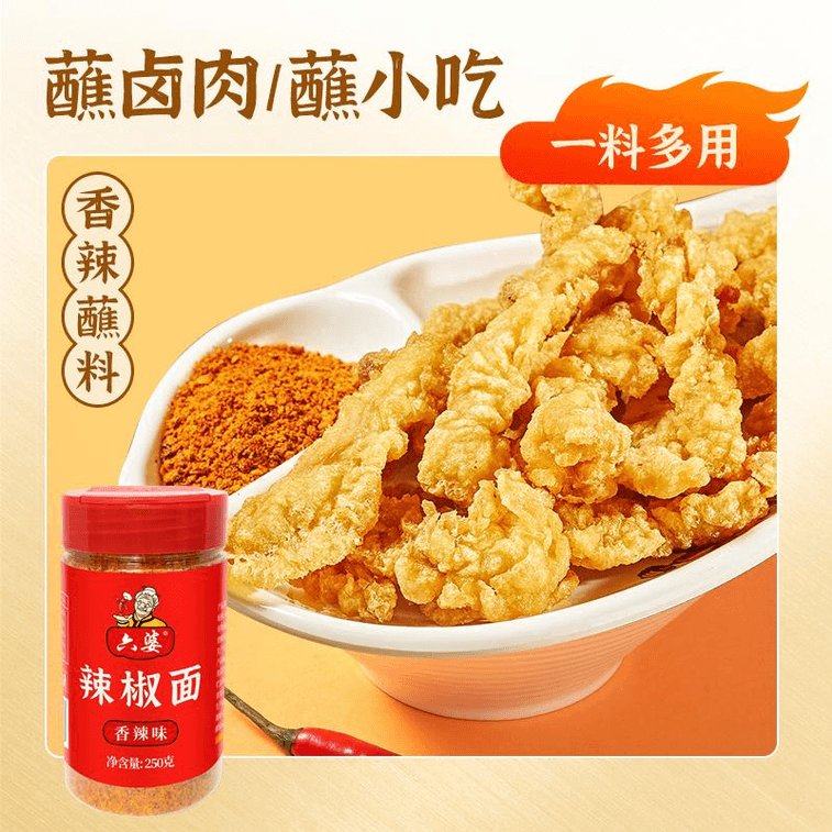 【中國直郵】六婆辣椒麵四川香辣椒麵火鍋串串燒烤烤肉乾料蘸料250g*1瓶
