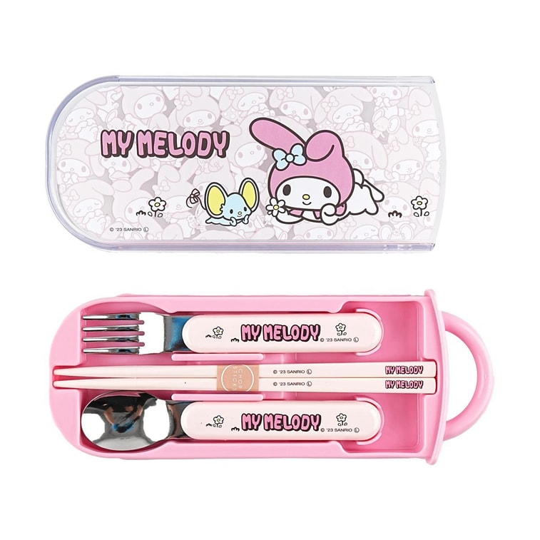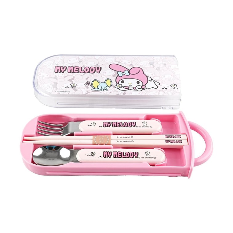 日本SKATER斯凱達 筷子湯匙叉子三件組 抗菌滑動蓋餐具 My Melody