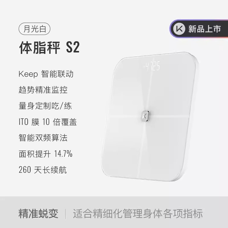 【中國直郵】Keep 智慧體脂秤家用精準測量小型減肥減脂健康宿舍電子秤S2 月光白