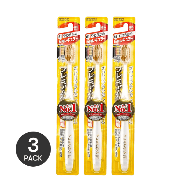 日本EBISU惠百施 牙刷 軟毛寬頭超細牙刷 彈韌柔軟 全效清潔 潔齒護齦 #6列48孔(61) 3支 顏色隨機 紅白藍黑四色隨機發貨【超值裝】