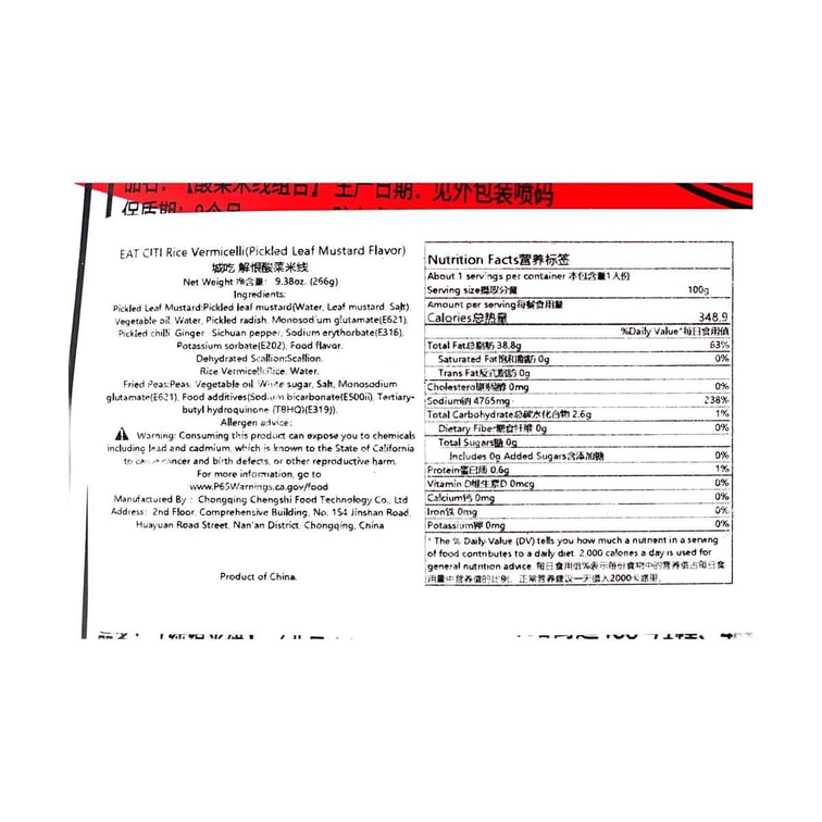 城吃 解恨酸菜米線 酸辣米粉 微辣 268g【川渝風味】【李米線平替】
