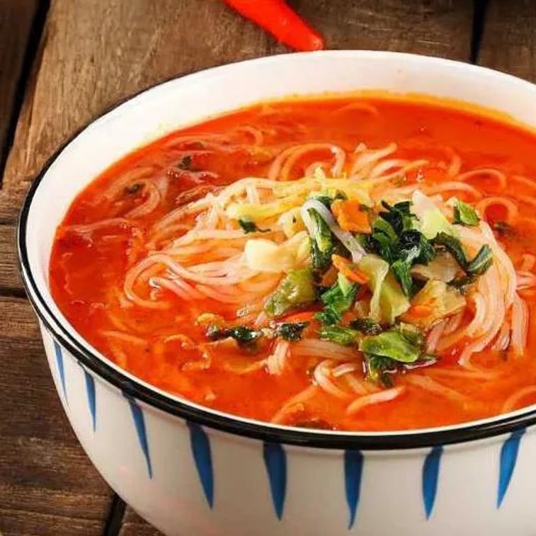 4.將煮製完成的酸湯粉裝碗即可享用美味