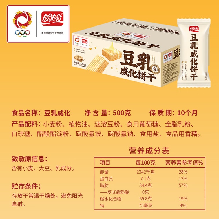【中國直郵】 盼盼 威化餅乾 休閒零食早餐食品夾心餅乾下午茶膨化 豆乳味 500g/箱