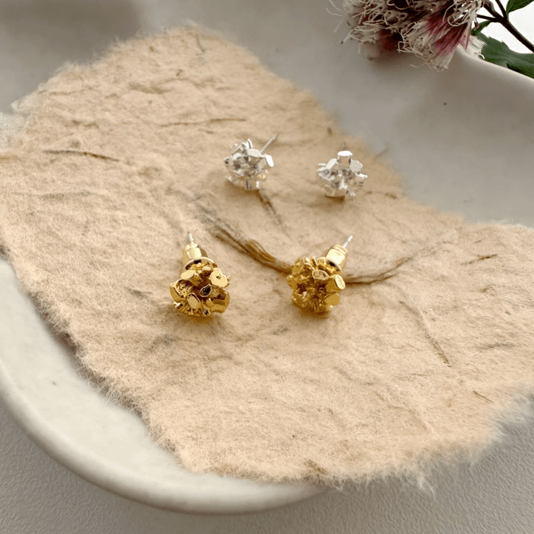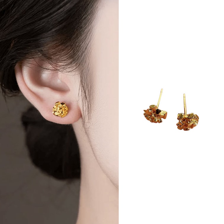 Fancy Jasmine 日常通勤高級感必備耳環 碎銀子耳環 閃耀金屬不規則熔岩肌理感碎石銀色耳環 1對 璀璨星河滿天星 【附贈Facny Jasmine高端抽拉懸浮首飾盒】